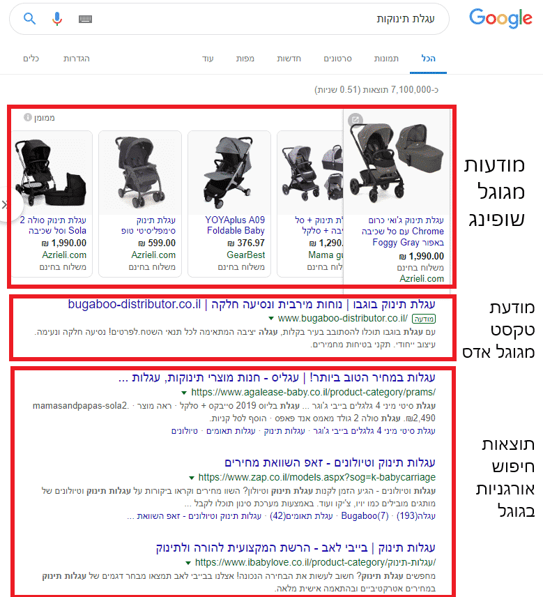 לתחום התוצאות האורגניות לא נתייחס במאמר זה משום שמאמר זה עוסק בפרסום ממומן וקידום אורגני מעט שונה מהתחומים שמופיעים במאמר זה. תוכלו ללמוד על נושא זה במאמר שכתבנו “איך קידום אורגני יכול לשדרג את כמות המבקרים באתר של העסק שלנו?”