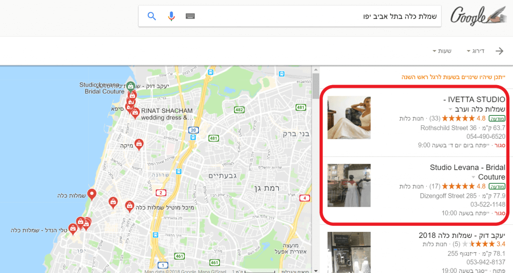 גוגל נותנים לתוצאות החיפוש חשיבות לפי הסדר הבא: מפרסמים רלוונטיים, עסקים לפי מיקום קרוב שמופיעים בגוגל מפות ורק לבסוף תוצאות אורגניות